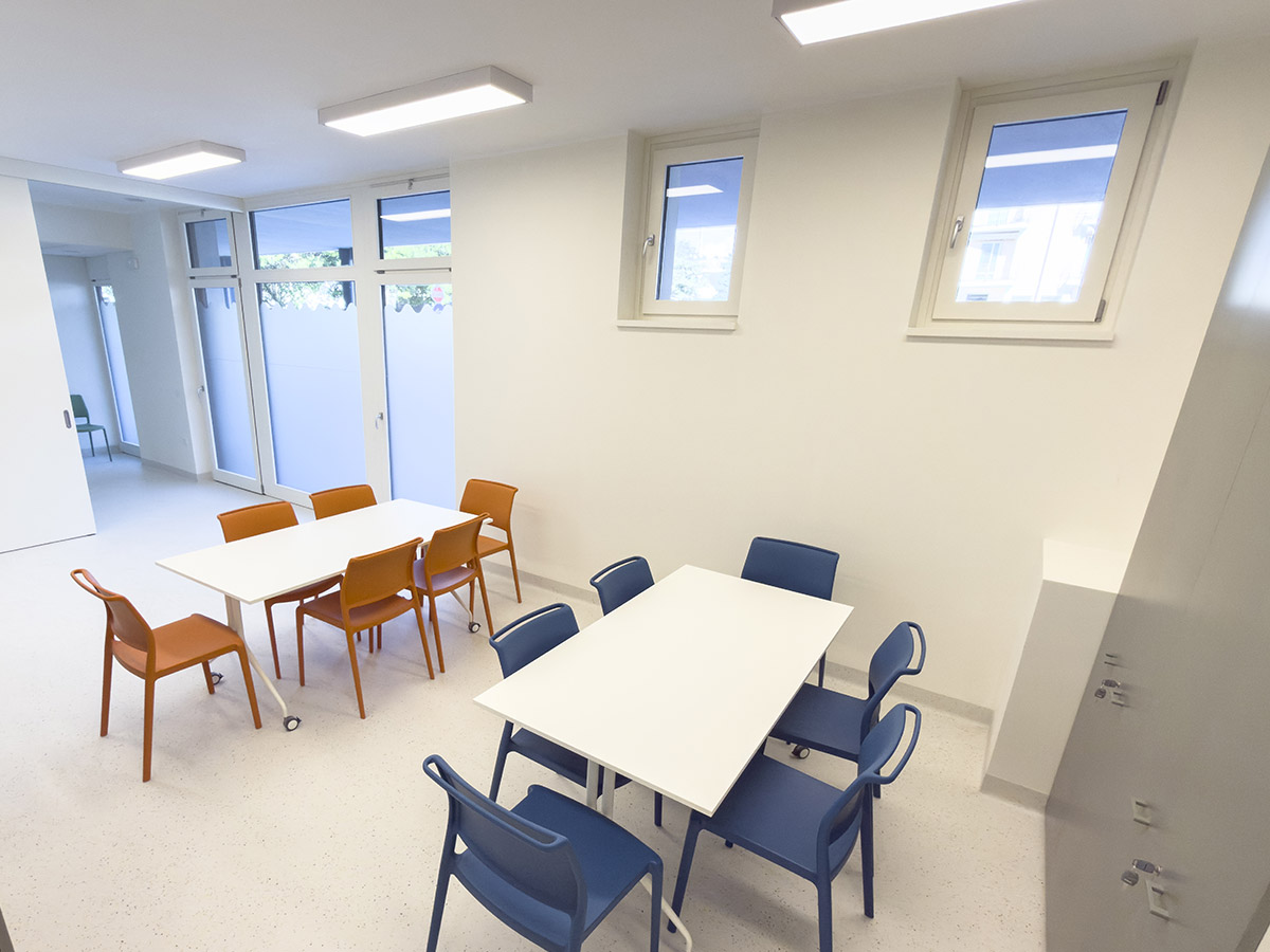 Cooperativa Monteverde Onlus è una realtà storica del territorio veronese, attiva da tanti anni nel campo dei servizi rivolti alle persone con disabilità. Un edificio in disuso da molti anni, acquisito, è stato ristrutturato per prevedere un centro diurno, ambulatori, sale per corsi e attività interne, e un nuovo appartamento protetto. Non solo: all’interno di Monteverde, una stanza è stata trasformata in un piccolo negozio legato alla “Fucina della Solidarietà”, il laboratorio creativo della cooperativa. Un luogo vivo, in continua evoluzione, dove gli spazi devono adattarsi a usi diversi e delicati.