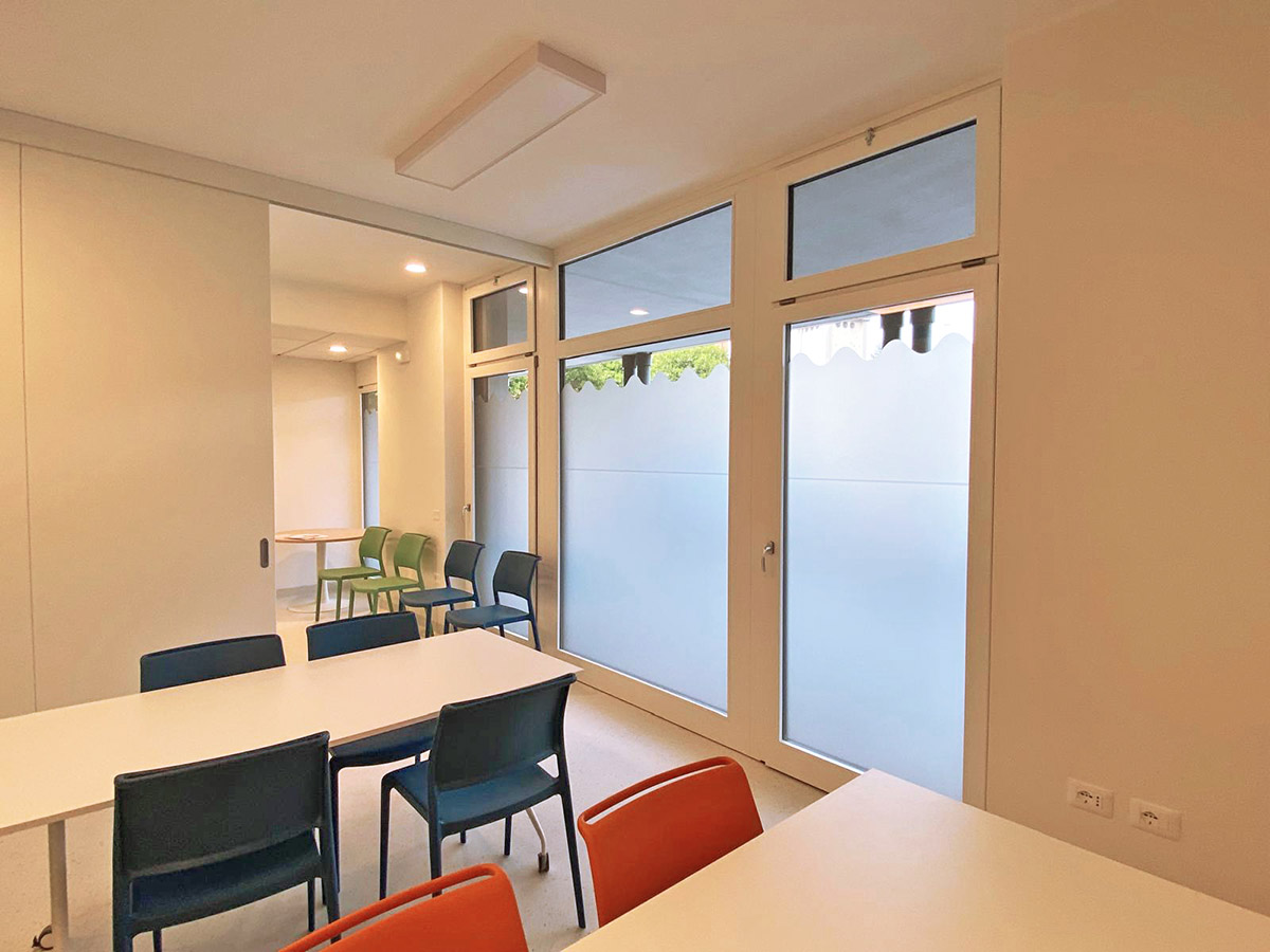progettazione delle vetrate ci ha permesso di dimostrare come gli ambienti oggi possono essere luminosi ma anche protetti, aperti verso l’esterno senza rinunciare alla riservatezza necessaria in spazi come quello dedicato alla salute mentale o l’appartamento protetto. Una soluzione tecnica pensata non solo per “chiudere” uno spazio, ma per renderlo realmente abitabile, vissuto e rispettoso delle persone che lo frequentano.